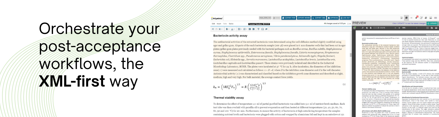The Kriyadocs Unified Publishing Ecosystem supports end-to-end journal workflows with clear structure and transparency. It enables teams to manage processes, metadata, and handoffs within a single environment, reducing fragmentation across the publishing lifecycle.