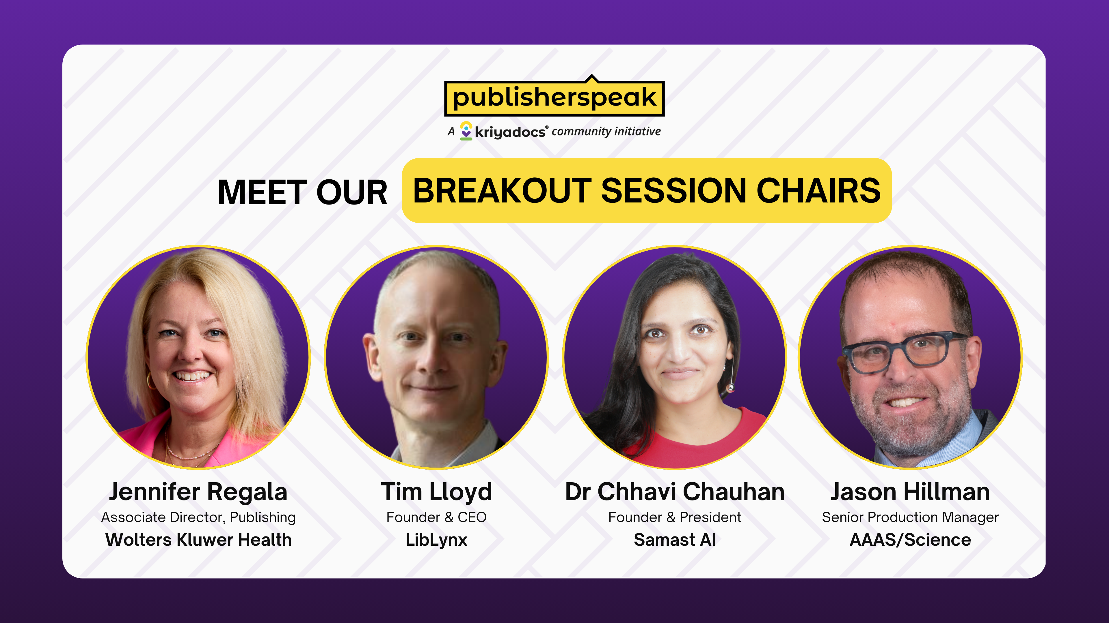 One of the highlights of the Publisherspeak program is our unconference-style breakout sessions. These sessions provide a platform for participants to brainstorm, collaborate, and ideate on real-world challenges in scholarly publishing today. This year, we are joined by four experts from across the industry, who will chair four breakout sessions focused on timely and critical themes at Publisherspeak US 2025.